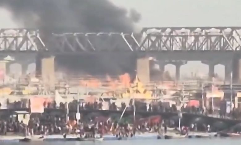 प्रयागराज। प्रयागराज में महाकुंभ में शास्त्री ब्रिज के नीचे पंडाल में भीषण आग लग गई। जिससे वहां अफरा-तफरी मच गई। पुल के ऊपर ट्रैफिक रोका गया है। तेजी से आग फैल रही है। कई फायर ब्रिगेड और एंबुलेंस घटनास्थल के लिए रवाना हुई है। कई लोगों आग लगने का कारण अभी स्पष्ट नहीं है। आग की घटना के बाद हॉस्पिटल में तैयारी पूरी की गई है। गनीमत है कि अभी तक किसी के भी हताहत होने की सूचना नहीं है।