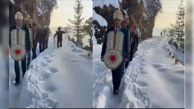 अनोखी शादी:3 फीट बर्फ में 7 किलोमीटर पैदल चलकर दुल्हन लेने पहुंचा दूल्हा