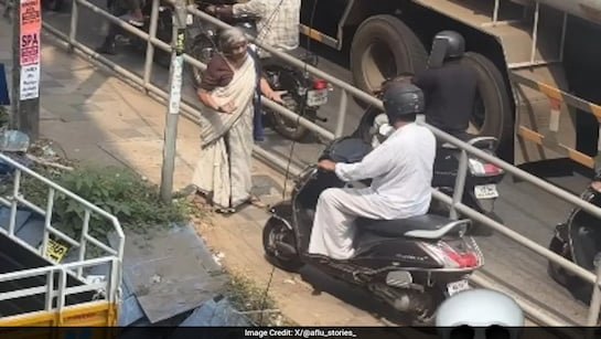 बुजुर्ग महिला ने फुटपाथ पर स्कूटर चला रहे शख्स को रोक, उनका साहसिक वीडियो सोशल मीडिया पर वायरल..