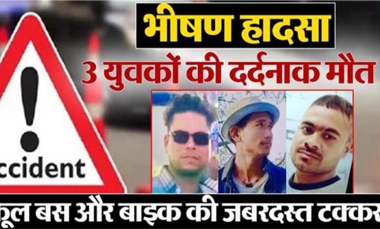 खटीमा में स्कूल बस और बाइक की जबरदस्त टक्कर, 3 युवकों की दर्दनाक मौत
