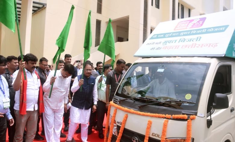 पीएम सूर्यघर योजना की स्टेट सब्सिडी हिग्राहियों के खाते में अंतरित हर जिले के लिए सूर्य रथ रवाना सूर्यघर व कुसुम योजना के हितग्राहियों को किया सम्मानित मुख्यमंत्री श्री विष्णुदेव साय ने बटन दबाकर पीएम सूर्यघर मुफ्त बिजली योजना के 618 हितग्राहियों को स्टेट सब्सिडी राशि 1.85 करोड़ रूपए उनके बैंक खातों में अंतरित किया। मुख्यमंत्री श्री साय ने कहा…