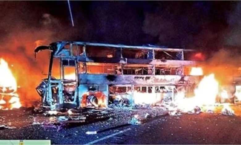 बस–लॉरी की टक्कर के बाद लगी आग, दो चालकों की मौत