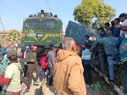 भीषण रेल हादसा, देवघर में ट्रेन और ट्रक की जोरदार टक्कर