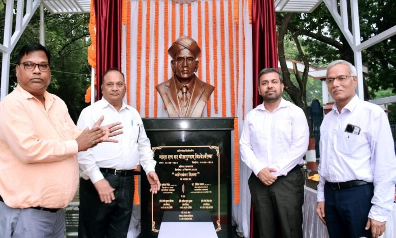 पाॅवर कंपनियों के मुख्यालय परिसर में डाॅ. विश्वेश्वरैया की प्रतिमा का अनावरणकिया डॉ. रोहित यादव ने