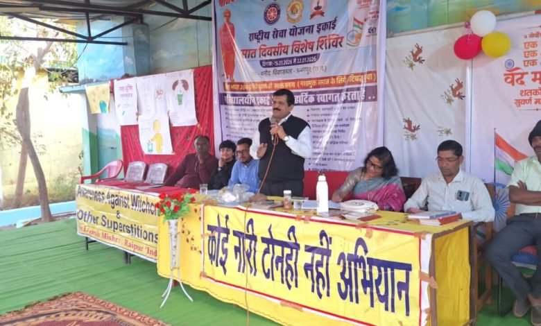 अभनपुर थनौद में व्याख्यान -अंधश्रद्धा निर्मूलन समिति के अध्यक्ष व नेत्र विशेषज्ञ डॉ. दिनेश मिश्र ने अभनपुर थनौद,में ग्रामीणों एवम शासकीय काव्योपाध्याय हीरालाल महाविद्यालय के छात्रों को संबोधित करते हुए कहा देश में अंधविश्वास और सामाजिक कुरीतियों के कारण अक्सर अनेक निर्दोष लोगों को प्रताड़ना का शिकार होना पड़ता है,जिससे निदान के लिए आम जन में वैज्ञानिक दृष्टिकोण के विकास…