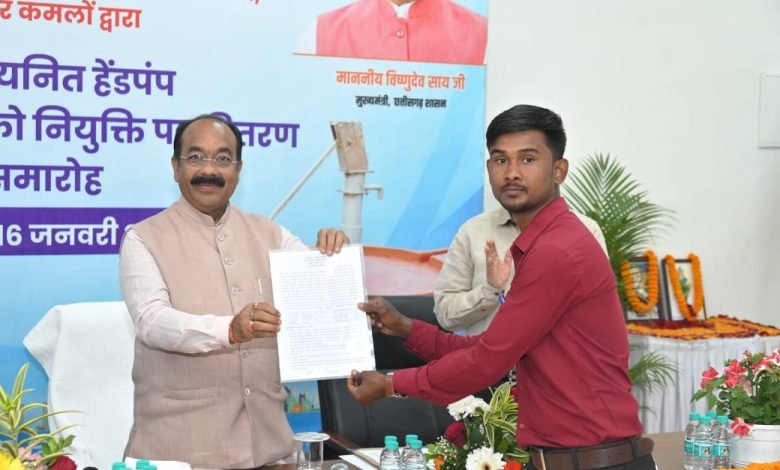 उप मुख्यमंत्री श्री अरुण साव ने 44 हैंडपंप तकनीशियनों को मिला नियुक्ति पत्र