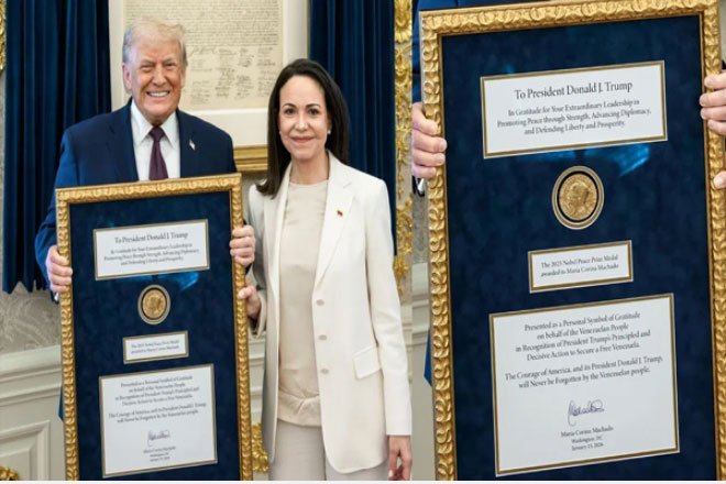 नेता मारिया मचादो ने राष्ट्रपति ट्रंप को सौंपा अपना नोबेल शांति पुरस्कार