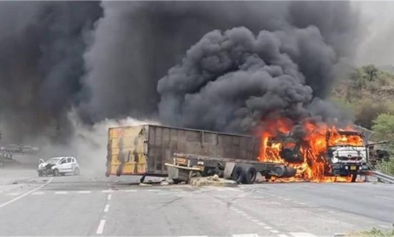 हाईवा की टक्कर से कंटेनर बना आग का गोला, जिंदा जला ड्राइवर…