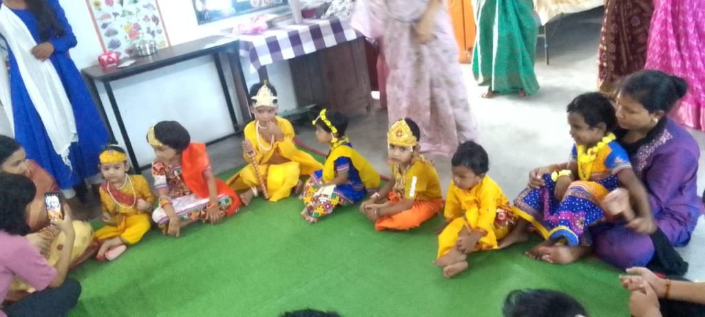 दिव्यांग बच्चे अपने-अपने माता पिता के साथ आये थे,वे श्री कृष्ण व राधा रानी का श्रृंगार करके काफ़ी उत्साहित थे। सर्वप्रथम बच्चों से राधाकृष्ण का पूजा अर्चना कराया गया, फिर उनके लिए जलेबी दौड़,मटका फोड़, चम्मच दौड़ आदि रखा गया।इनके लिए केक कटिंग व मिष्ठान वितरण भी किया गया अंत में संगीत की धुन पर बच्चों ने खूब डांस किया।