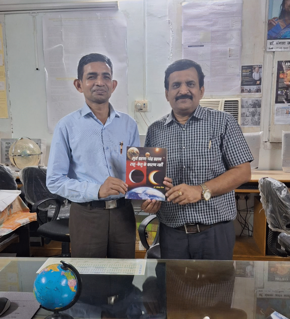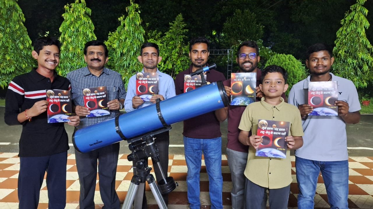 अंधश्रद्धा निर्मूलन समिति के अध्यक्ष डॉ. दिनेश मिश्र चंद्रग्रहण में रविशंकर विश्वविद्यालय के छात्रों से मिल कर उनसे चंद्रग्रहण जैसी खगोलीय घटना पर चर्चा की , टेलीस्कोप, ग्रहण पर आधारित स्वलिखित किताबें वितरित की और छात्रों से संवाद किया.