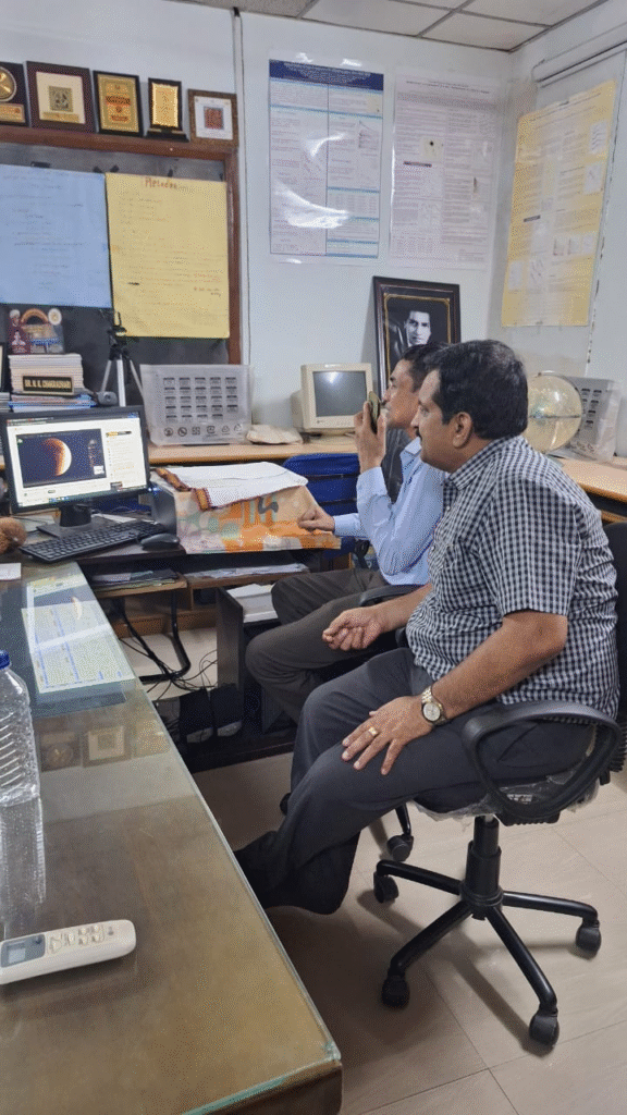 रविशंकर विश्वविद्यालय के भौतिक विज्ञान विभाग के प्राध्यापक डॉ एन के चक्रधारी से मिलकर वहां छात्रों से मुलाकात की. जहां टेलीस्कोप से ग्रहण देखने की तैयारियां थी साथ ही बरसात मौसम को देखते हुए ग्रहण को स्क्रीन पर भी देखा जा रहा था .