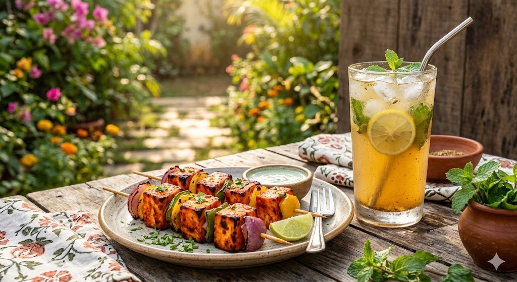 रायपुर, छत्तीसगढ़ – जैसे-जैसे पारा चढ़ रहा है, लोग भारी और ऑयली खाने के बजाय कुछ हल्का और चटपटा ढूंढ रहे हैं। इस सीज़न का सबसे हिट कॉम्बिनेशन है—घर का बना तंदूरी पनीर टिक्का और उसके साथ शरीर को ठंडक देने वाली स्पेशल शिकंजी मसाला।
