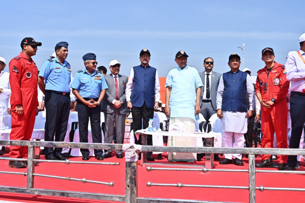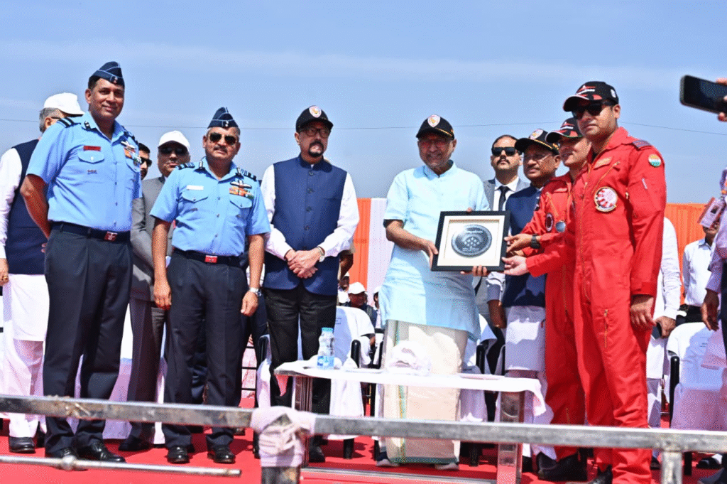 उप राष्ट्रपति श्री सी.पी. राधाकृष्णन, राज्यपाल श्री रमेन डेका, मुख्यमंत्री श्री विष्णु देव साय और विधानसभा अध्यक्ष डॉ. रमन सिंह ने देखा एयर शो
