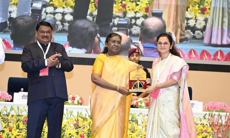 राष्ट्रपति श्रीमती द्रौपदी मुर्मू ने धरती आबा’ में उत्कृष्ट प्रदर्शन के लिए कलेक्टर श्रीमती चंदन त्रिपाठी को किया सम्मानित