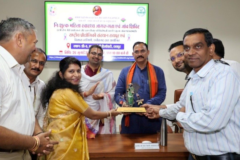 रायपुर । राष्ट्रीय प्रौद्योगिकी संस्थान (एनआईटी) रायपुर एवं विकास तरंगिणी, छत्तीसगढ़ के संयुक्त तत्वावधान में शनिवार को महिलाओं के लिए नि:शुल्क स्वास्थ्य जागरूकता एवं जाँच शिविर का एनआईटी परिसर में आयोजन किया गया। यह जांच शिविर और जागरूकता कार्यक्रम विशेषतः सर्वाइकल और ब्रेस्ट कैंसर जैसी गंभीर बीमारियों के लिए आयोजित किया गया। शिविर के माध्यम से महिलाओं को नि:शुल्क जाँच, परामर्श और आवश्यक दवाइयाँ उपलब्ध कराई गईं। इस अवसर पर राज्य के स्वास्थ्य मंत्री श्याम बिहारी जायसवाल शिविर में शामिल हुए और महिलाओं को बेहतर स्वास्थ्य सुविधाएं देने की सरकार की प्रतिबद्धता को दोहराया।