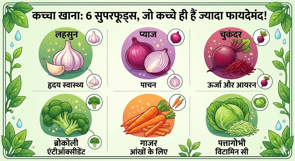 अक्सर हम हर चीज को तेल-मसाले में भूनकर या उबालकर ही खाते हैं। हमें लगता है कि पकाने से खाना साफ और सुरक्षित हो जाता है। ये बात काफी हद तक सही भी है, लेकिन हर चीज पर लागू नहीं होती। हमारी रसोई में मौजूद कुछ चीजें ऐसी हैं, जिन्हें आग पर चढ़ाते ही उनके आधे से ज्यादा पोषक तत्व (nutrients) जलकर खत्म हो जाते हैं। अगर आप इन्हें कच्चा खाएंगे, तो इनके फायदे कई गुना बढ़ जाएंगे।