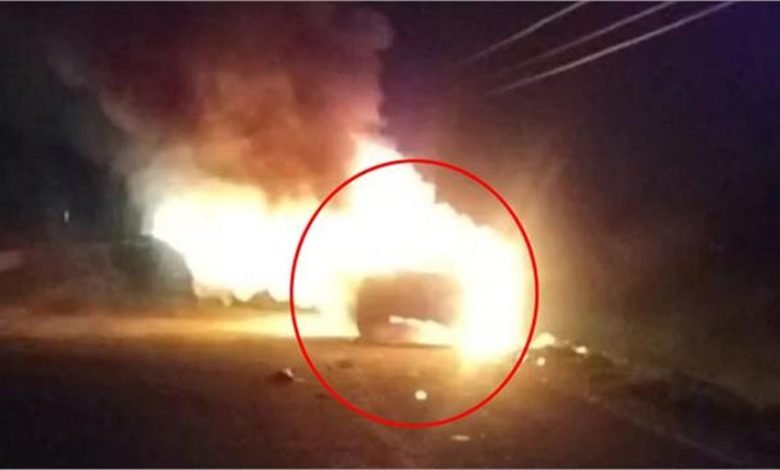 तेज रफ्तार कार एक अज्ञात वाहन से टकराने के बाद बनी आग का गोला, मां और मासूम जिंदा जले