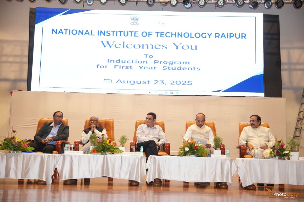 नेशनल इंस्टीट्यूट ऑफ टेक्नोलॉजी (एनआईटी) रायपुर में 23 अगस्त 2025 को सत्र 2025-26 के नवप्रवेशी विद्यार्थियों के लिए एक प्रेरणादायी ओरिएंटेशन (इंडक्शन) कार्यक्रम का आयोजन किया गया। कार्यक्रम के अंतर्गत सबसे पहले डिजिटल लर्निंग को बढ़ावा देने हेतु दो स्मार्ट क्लासरूम्स का उद्घाटन किया गया, जिसके बाद छात्र गतिविधियों और शैक्षणिक आयोजनों को प्रोत्साहित करने हेतु हीरा ऑडिटोरियम और हीरा वीआईपी लाउंज का उद्घाटन किया गया। इस कार्यक्रम में मुख्य अतिथि श्री बजरंग लाल अग्रवाल, सीएमडी, गोदावरी पावर एंड इस्पात लिमिटेड, डॉ. सुरेश हावरे, अध्यक्ष, बोर्ड ऑफ गवर्नर्स, एनआईटी रायपुर एवं आईआईटी भिलाई, श्री एस.के. अग्रवाल, पूर्व छात्र, एनआईटी रायपुर (1975), श्री उमेश चितलांगिया, अध्यक्ष, अलुमिनी एसोसिएशन, जीईसी-एनआईटी रायपुर तथा डॉ. एन.वी. रमना राव, निदेशक, एनआईटी रायपुर की गरिमामयी उपस्थिति रही। इस अवसर पर सभी डीन, विभागाध्यक्ष, संकाय सदस्य, कर्मचारीगण एवं छात्र-छात्राएँ उपस्थित रहे।
