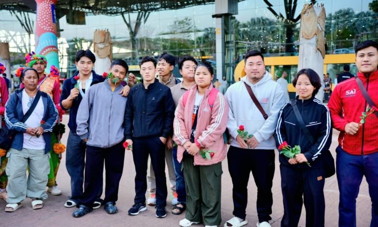 खेलो इंडिया ट्राइबल गेम्स के लिए खिलाड़ियों का छत्तीसगढ़ पहुंचना शुरू,अरुणाचल के वेटलिफ्टरों का विमानतल पर रंगारंग स्वागत…