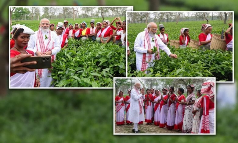 चुनाव प्रचार से पहले चाय बागान पहुंचे पीएम मोदी ने महिलाओं के साथ तोड़ीं पत्तियां