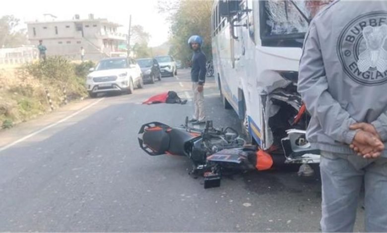 देहरा। एनएच-503 पर देहरा के 132 केवी सब स्टेशन के समीप एक भीषण सड़क हादसे में बाइक सवार युवक की मौके पर ही मौत हो गई, जबकि बाइक पर पीछे बैठी युवती गंभीर रूप से घायल हो गई। हादसा देहरा हनुमान चौक से धर्मशाला-कांगड़ा मार्ग की ओर जाते समय हुआ। जानकारी के अनुसार श्रद्धालुओं से भरी एक नई टूरिस्ट बस सोलन से ज्वालामुखी मंदिर दर्शन के बाद माँ बगलामुखी मंदिर जा रही थी। इसी दौरान धर्मशाला-कांगड़ा की ओर से आ रही तेज रफ्तार बाइक बस से जा टकराई।